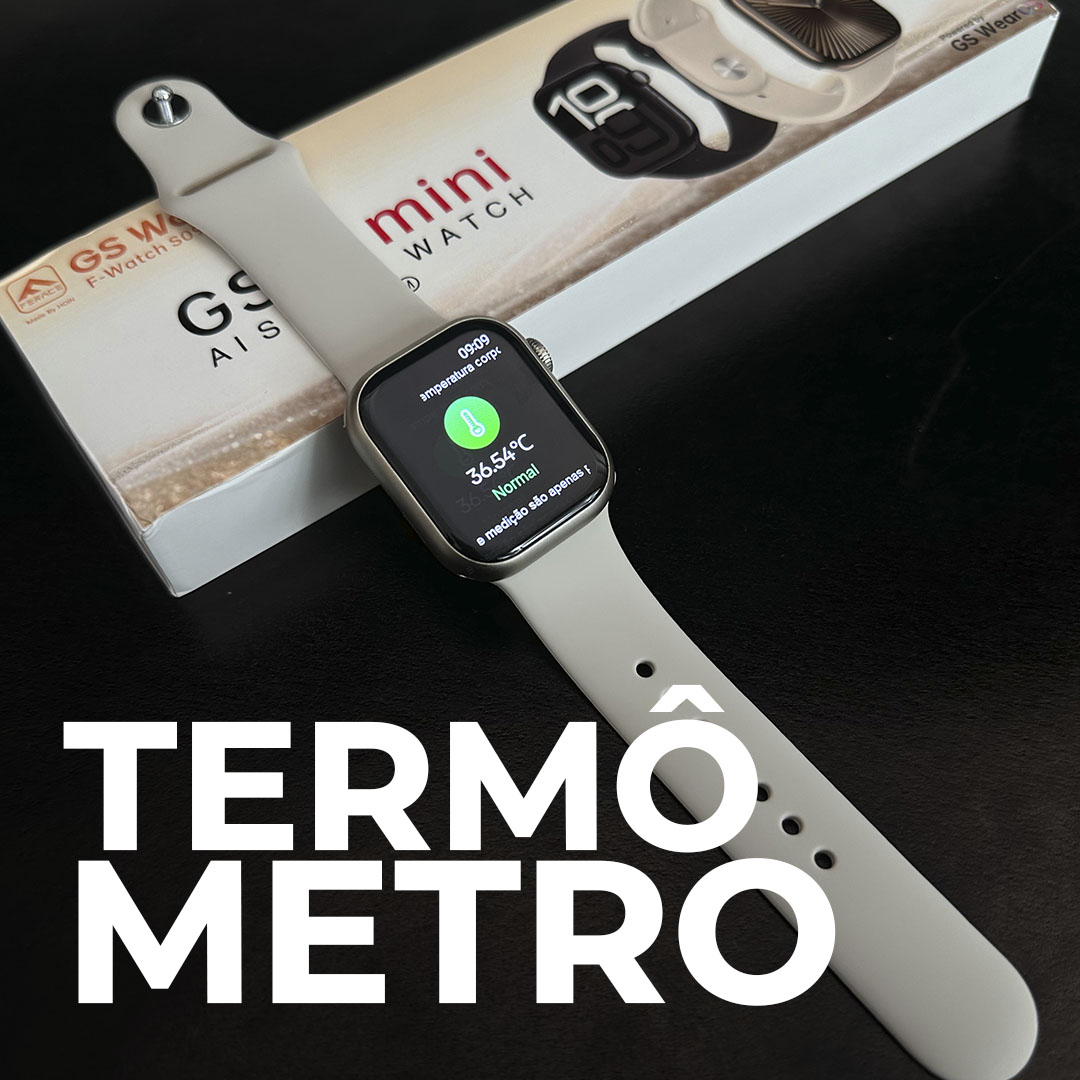 O GS10 MINI é um smartwatch ideal compacto, moderno e com visual atualizado, ele combina estilo e desempenho em um corpo de 41mm, ele é perfeito para pulsos mais finos.